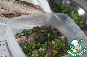 На этом этапе рыба уже очень вкусная, с лёгкой кислинкой, не нуждающаяся в соли, хотя мы не солили её.