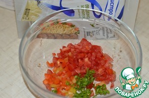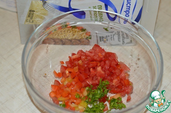 • 3. Помидор, болгарский перец и петрушку мелко нарезать.