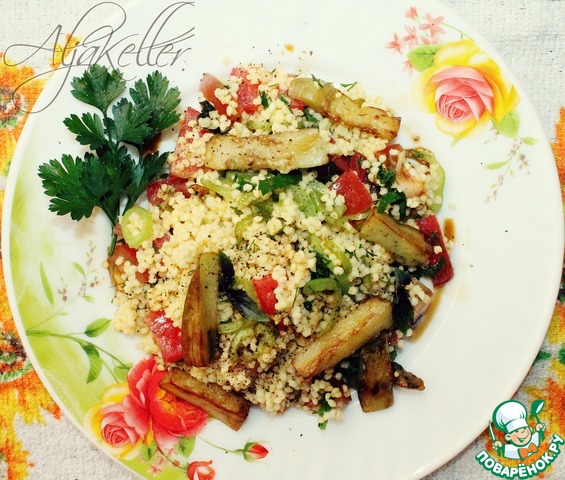 • 6. Готовое пшено смешать с нарезанными овощами, посолить, поперчить.