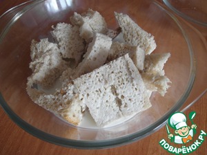 Сложить приготовленный хлеб в миску и заливаем молоком.