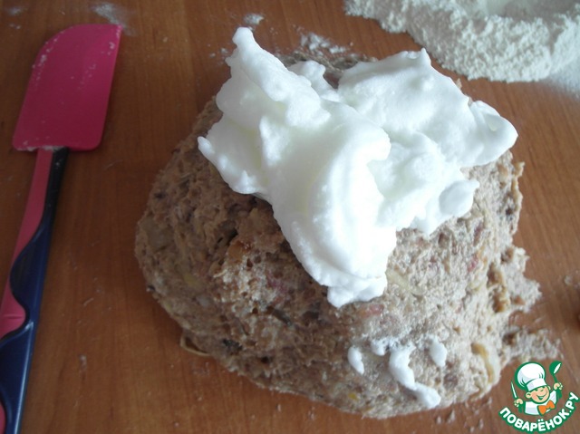 Белковую пену добавляем в котлетную массу и аккуратно, но тщательно перемешиваем, отбивать уже не надо.