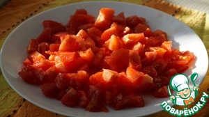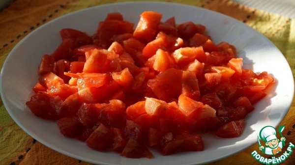 Помидоры кладем в кипящую воду на 30 сек- 1 минуту, обдаем холодной водой и ОБЯЗАТЕЛЬНО снимаем шкурку.