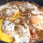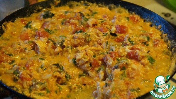 Мешаем до тех пор, пока яйцо полностью не схватится, но в тоже время будет еще сочным.