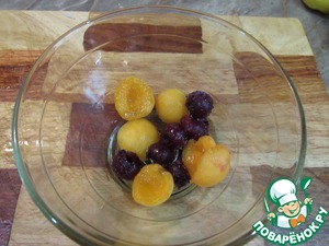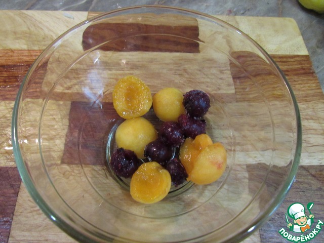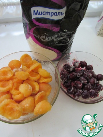 Из вишен и абрикосов удаляем косточки и засыпаем сахаром.