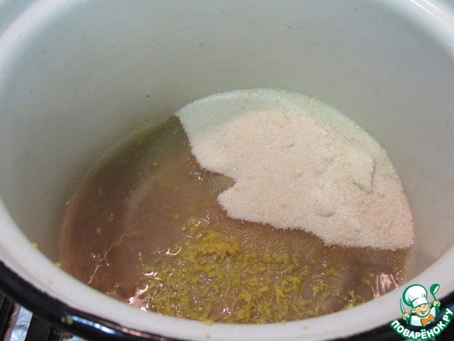 Начинаем варить сироп: смешиваем сахар, вино, цедру и сок лимона.