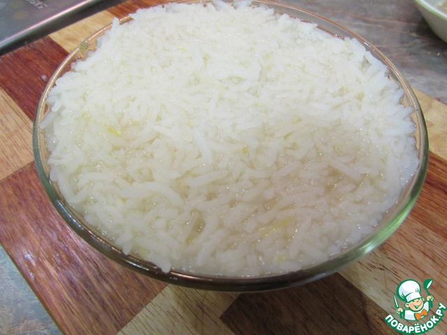 Предварительно отварим 2 пакетика риса в несоленой воде.
