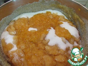 Абрикосы и тыкву перекручиваем на мясорубке и засыпаем сахаром, чтоб фрукты дали сок.