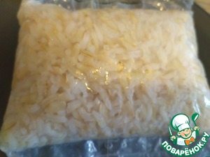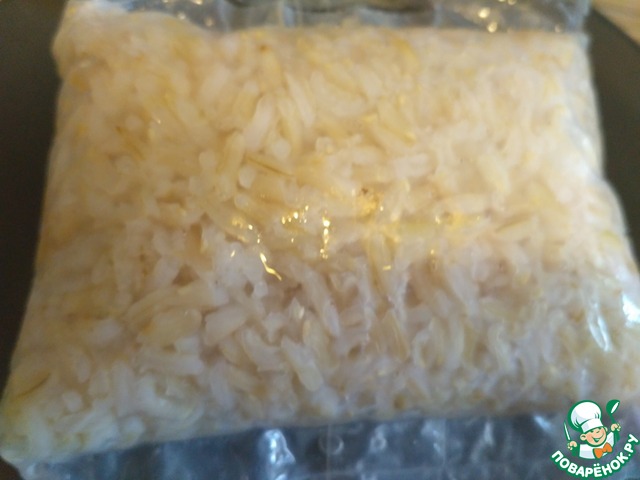 Пакетик с рисом варить в кипящей воде 35 минут. Достать из кастрюли, дать стечь воде, охладить.