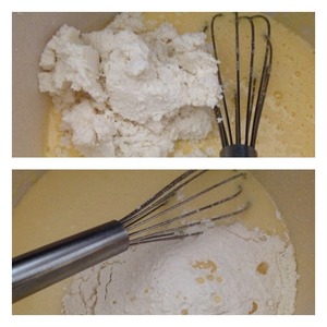 В яичную массу выложить не жидкий творог, ( я использовала мягкий творог), и взбить пару минут.