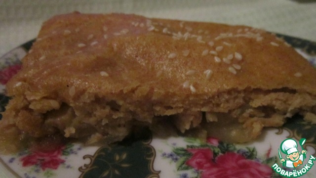 У меня форма большая, маленькой нету, поэтому пирог не высокий получился.