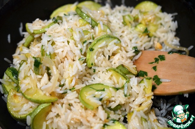 Рецепт «Рис с кабачками, копченым сыром и мятой»: