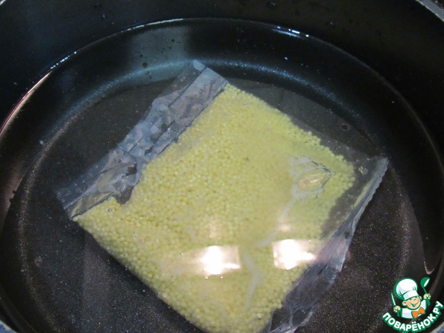 Первым делом ставим вариться пакетик с пшеном.
