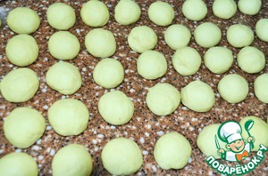 Взвесить тесто и разделить на кусочки 20 - 24 г., подкатать их в колобки.