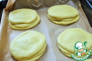 Третий колобок раскатать и накрыть им кружки с сыром.