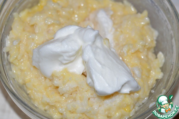 4. Белки взбить в крепкую пену и аккуратно ввести в рис.