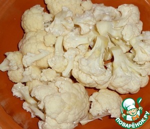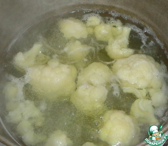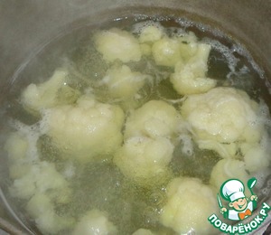 Понадобится цветная капуста, её разобрать на соцветия и вскипятить воду.
