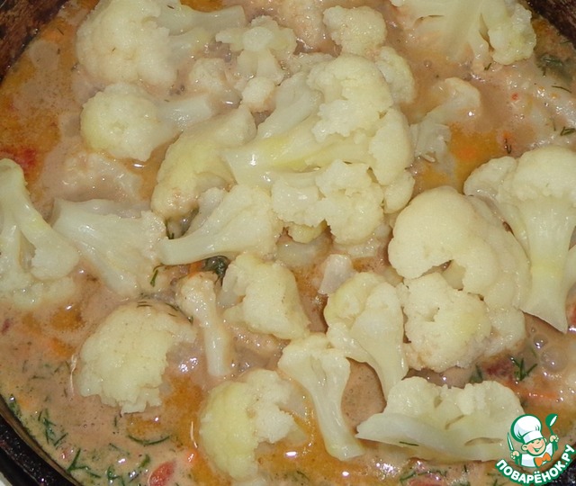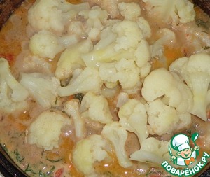 Затем добавить цветную капусту и тушить еще 5-7 минут.