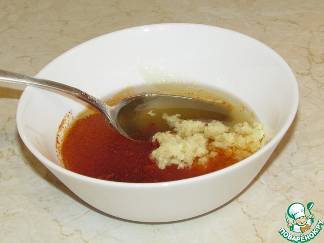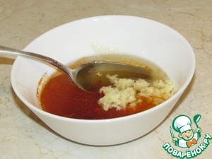 Смешиваем мед, уксус, масло, перец и чеснок.