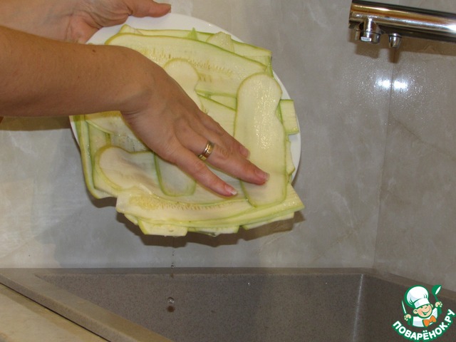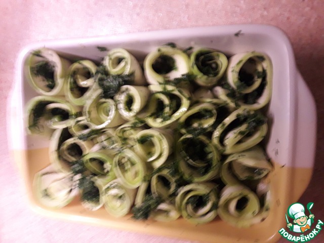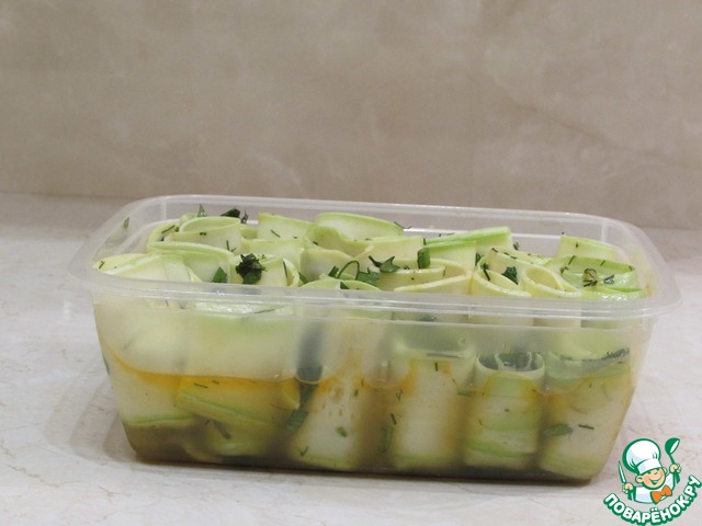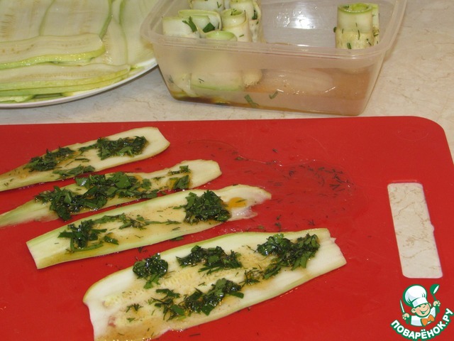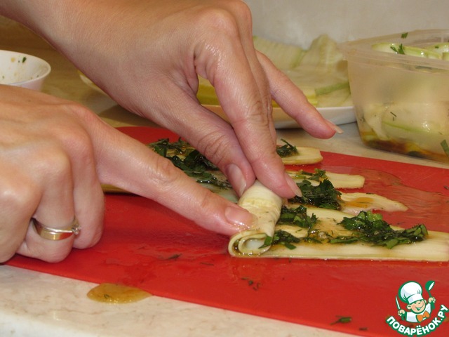 Рецепт «Рулетики из кабачков в чесночно-медовом соусе»: