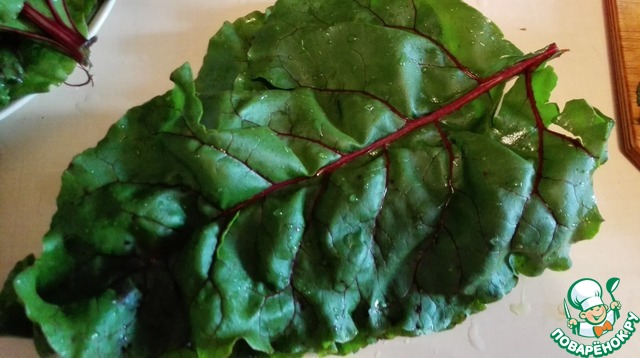 • Выбираем красивые зеленые свекольные листики. Хорошенечко промываем, можно залить водой, чтобы весь песок вымылся и не хрустел на зубх.