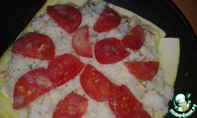 Рецепт «Рисовая запеканка в кабачковой корзинке»: