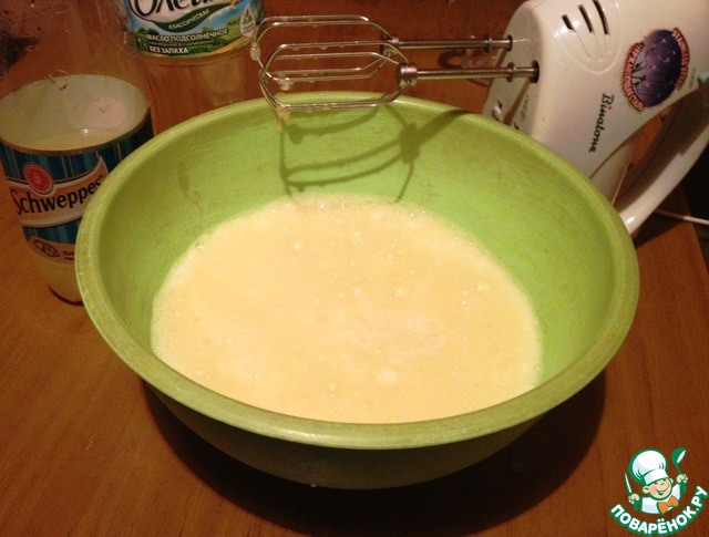 Влить водку, лимонад и растительное масло. Перемешать.