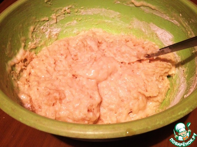 Ввести просеянную с разрыхлителем муку. Перемешать.