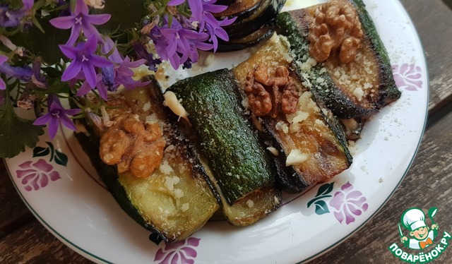• Кабачки нарезаем вдоль, солим и жарим в масле.