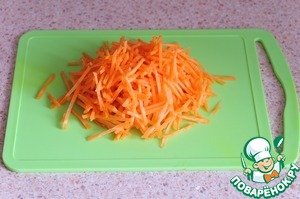 Натереть морковь на корейской терке.