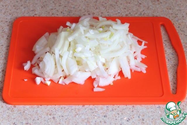 Порезать пулукольцами лук.