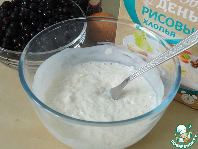 Зальем рисовые хлопья кефиром и оставим на 15 минут.