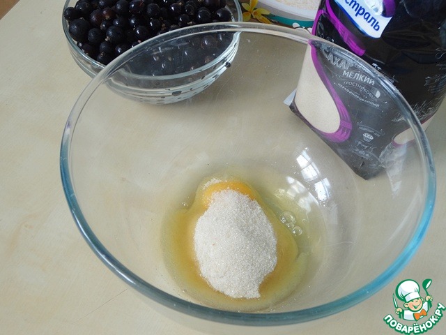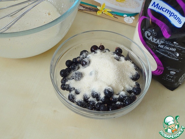 Смешаем промытую и высушенную смородину с сахаром и отставим в сторону.