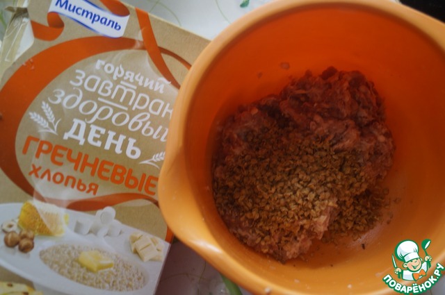 Для фрикаделек: в фарш добавить соль, молотый черный перец, яйцо и гречневые хлопья, также можно добавить измельченный лук.