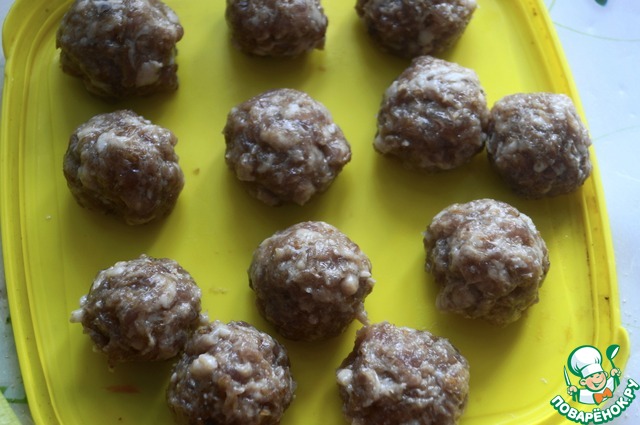 Сформировать из фарша небольшие фрикадельки одинакового размера.