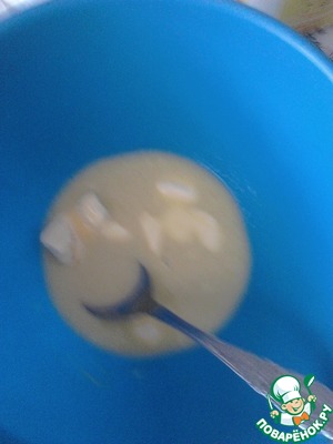 Залить сливочное масло кипятком, дать маслу оттаять.