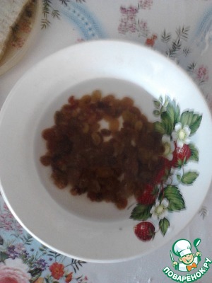 Изюм залить кипятком.