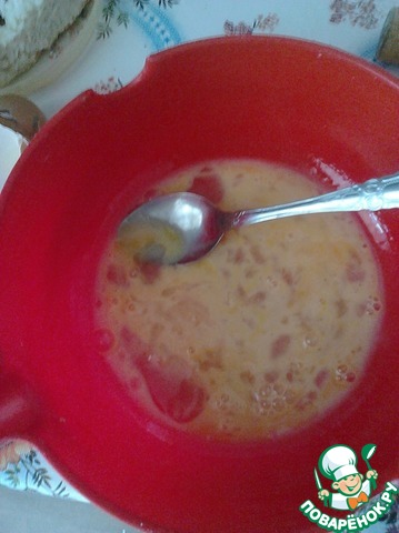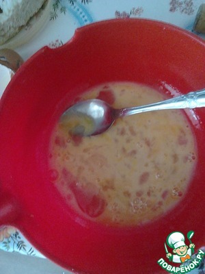 Яйца взбить, добавить соль, мускатный орех и перец, ещё раз перемешать.