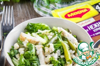 Очень удачное, на мой взгляд, сочетание. С одной стороны вроде бы всем известные продукты, с другой стороны, каждый из них имеет свою особенность. Готовится такой салат просто и быстро.