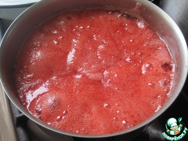 Из клубники выжимаем сок.