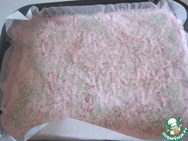 Выравниваем, сверху посыпаем геркулесом.