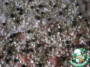 • На геркулес распределяем черную смородину, солим, приправляем.