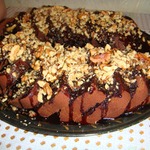Еще рекомендация от меня. После выпекания порезать на кусочки. Уложить веером на широкое блюдо. Полить оставленной помадкой и посыпать колотым орехом.