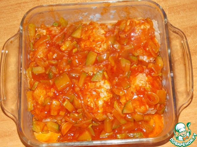 Рецепт «Котлеты, запечённые под кабачковой шубой»: