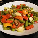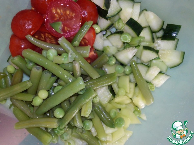 Слегка припускаем фасоль и горошек. Я это делаю в СВЧ 3 минуты в закрытом контейнере.