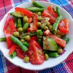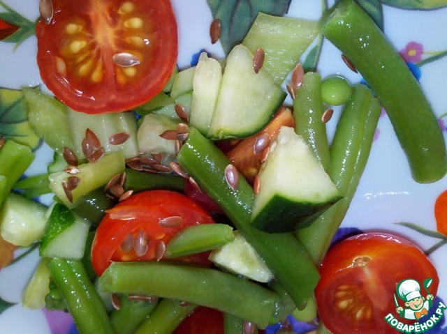 Лёгкий овощной салат для тех, кто следит за своей фигурой и придерживается правильного питания! Подойдёт в качестве гарнира к отварной или приготовленной на гриле курице, индейке, нежирной рыбе.