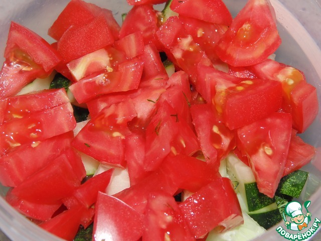 Такую окрошку придумал муж, когда мы с детьми отдыхали на море. Жарко, есть не хочется и готовить тоже. Минимум усилий и минимум калорий.