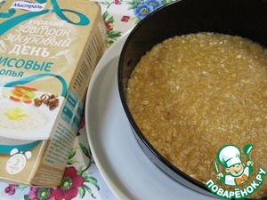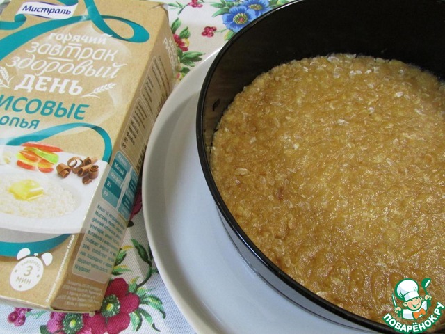 Круг от формы (20 см) поместить на блюдо, на котором будете собирать торт. Готовую основу для торта выложить внутрь формы.