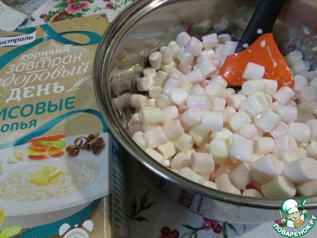 Помешивая, растопить маршмеллоу. Снять с огня и хорошо остудить. -