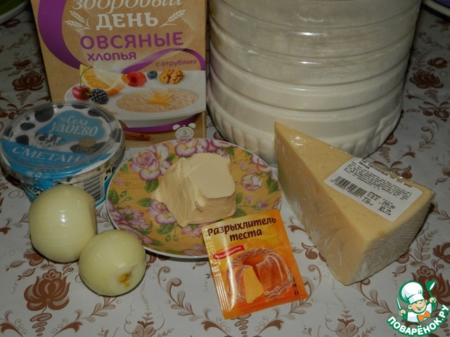 Ингредиенты для «Овсяные монетки с луком и сыром»: