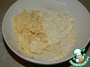 Смешать лук, маринованный в сметане, мягкое сливочное масло, сыр, молоко и овсяные хлопья.